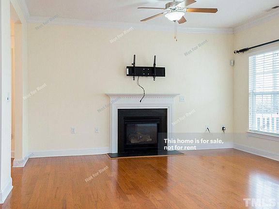 This Wake Forest townhome offers a fireplace, hardwood flooring, granite kitchen countertops, stainless steel appliances, and a two-car garage.