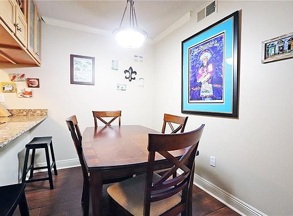 Popular Metroview Condo w/Private Balcony Overlooking the POOL! Gated community! Townhouse style condo features wood flooring, kitchen w/SS appliances, granite counters & great storage! Sunny Den w/Updated Atrium Doors! Reserved parking#75 & Personal Storage Unit#36! Laundry hookups for combo washer/dryer in unit! Additional laundry on site. Gym! Pet friendly w/Doggy greenspace. A/C under maintenance contract. Central Metairie location close to the lake, Lakeside Mall, EJ Hospital & easy access to downtown.