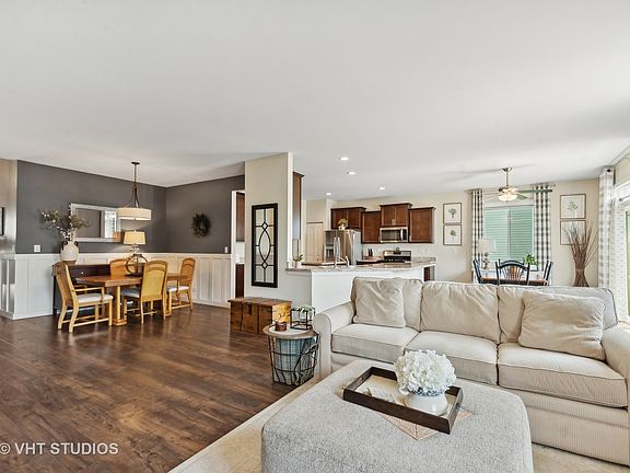 Only ranch home available in Tall Oaks - skip the wait for new construction and step into this stunning Takoma model. Home boasts incredible curb appeal with brick paver-framed driveway - property surrounded by beautiful perennials/trees, and features a fully fenced yard with dual gates leading to a stunning outdoor space with a gazebo, paver patio, and maintenance-free deck. Inside, enjoy an open floor plan with 9' ceilings in the living room, laminate wood flooring in main areas, and new carpeting in bedrooms and basement stairs. The kitchen is a cook's dream with designer cabinets, can lighting, stainless steel appliances, an expansive island, and a generous peninsula. Primary BR suite offers two WICs/bath with a dual bowl vanity/dble shower. Two more BRs also with spacious closets & lots of storage! All this and a lookout bsmt awaiting your finishing ideas, roomy 2-car garage, architectural shingles & and Hardie siding exterior.