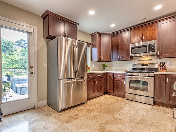 Welcome to North Mission Hills! We call this the upside down house: there are five outdoor patios/balconies, four full bathrooms, three floors, three bedrooms, plus a private bottom floor with full bath and walkout that could also be used as a bedroom! The home is built in 2013 and move-in ready. The main floor is an open concept living space with vaulted ceilings and peek-a-boo ocean views. The carport solar panels generate enough power for little to no electric bill. The home has built in Sonos sound, four driveway parking spaces, and central air. Come see what you can do with the great floor plan! Freshly painted. Owner recently replaced existing flooring with luxury vinyl flooring.