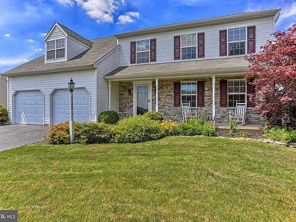 Fall in love with this Ashley Farm gem. As you walk up to the home you will be greeted by a full front porch with stacked stone facade. Step inside the foyer with hardwood floors. Just off the front entry you will find a large light-filled home office for the perfect work-from-home space. The large open kitchen and family room features a 4 foot bump out from the standard builder plan. The gas fireplace in the family room gives you the instant ambiance of a fire without all the hassle of a wood-burning fireplace. The large eat in kitchen with island creates a great space for cooking, baking or space for homework. The attached dining room looks out on the peaceful backyard space and is perfect for entertaining. Upstairs are four large bedrooms and two full baths. The master suite has 10-foot ceilings with a large master bath with a jetted garden tub and stand-alone shower. The large walk-in closet has extra space to store luggage, out of season clothes, etc. The second large bedroom has its own walk-in closet and two full windows. The two additional bedrooms are spacious and have full closets. Venture down to the finished basement with tons of storage and room to entertain. The hobby/craft room has built-in workspace to work on hobbies or crafts. Just of the utility space is an 18' x 17' crawl space for even more storage. Enjoy the peaceful backyard space on the patio that looks out over farmland and in the distance, you can see Ski Roundtop. Brand new hot water tank in June 2020. Dog door in the slider can convey or be removed.