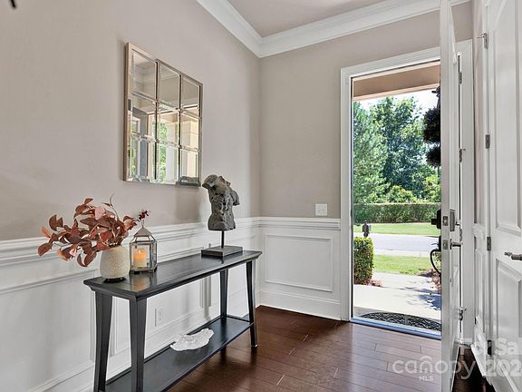 Welcome to this stunning 2016 home in the highly sought-after gated community of Park South Station. This elegant residence blends modern conveniences w/ luxurious upgrades. It features 3 spacious bedrooms, with en-suite bathrooms and large closets. The home boasts rare 10ft ceilings on the first floor and 9ft ceilings on the upper level, complemented by hardwood floors throughout. Custom touches include crown molding, tray ceilings, and a built-out primary closet & cabinetry. The open floor plan creates an inviting atmosphere, perfect for entertaining. The gourmet kitchen is a highlight, with quartz countertops & a large island. The primary suite is a luxurious retreat, offering a cozy nursery/sitting area or office feat. a private balcony. Additional feat's incl a 2-car garage. Park South Station offers an array of amenities such as a pool, gym, clubhouse, dog park, playground, access to Little Sugar Creek Greenway. The community is close to SouthPark Mall and South End