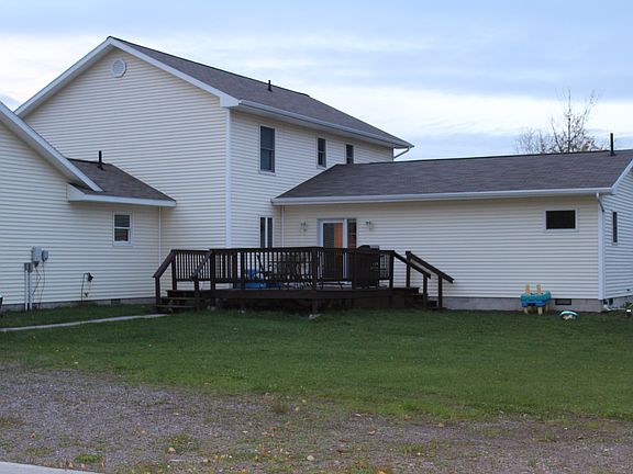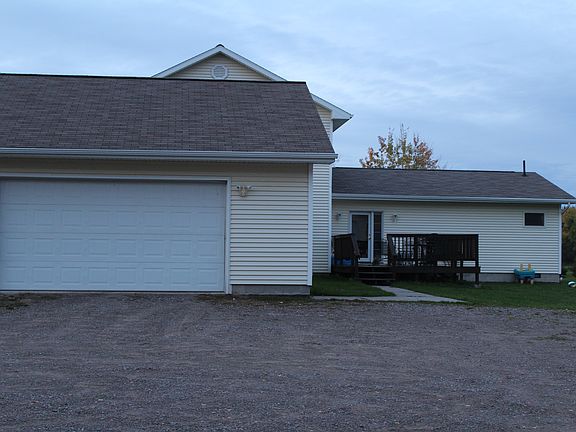 This custom well build home is less than one mile outside the city limits on just under 5 acres of land with trees. It has 2 big size kid bedrooms and also 2 master bedrooms both with walk in closets and own bathroom. Three bedrooms are located upstairs and one master bedroom on the main floor. This house has a country - modern look to it. There is a formal dining room and family room, as well as living room. Huge kitchen great for entertaining, all stainless steal appliances and ceramic tile throughout. Two decks are located on the house for outside living and entertaining and having a grill out. The outside is perfect space for your kids to run around and play in the two-story playhouse with slide, or on the swingset and sandbox. There is a attached 28x28 garage to keep your cars in and also a 40x66 workshop detached garage that has in-floor heat, and is drywalled throughout for a shop or heated storage with 3 zones so if you want only to heat part of it you can. 40x20 has a 16 foot door. The house has a heated crawl space great for storage and also keeps the ceramic tile nice and warm. The house is certainly heated with the outside wood burner, but also you can use the propane, its all hooked up just flip a switch.