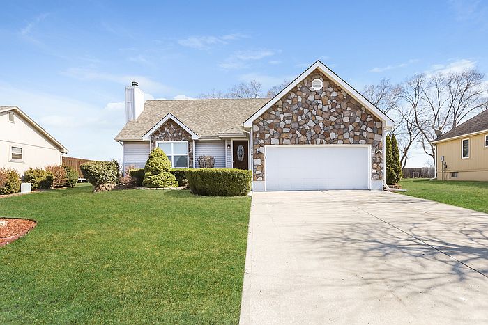 Introducing this exquisite 4-bedroom, 3.5-bathroom home located in the desirable area of Lee's Summit, MO. As you step inside, you'll be greeted by a stunning living room boasting a vaulted ceiling and beautiful flooring, creating a warm and inviting atmosphere. The kitchen is a chef's dream, featuring elegant granite countertops, a convenient pantry, and stainless steel appliances. The adjacent dining room, with its charming bay window, provides the perfect setting for enjoying meals with loved ones. The spacious bedrooms offer plenty of room for relaxation, and the primary suite includes a luxurious en-suite bathroom for your private retreat. Step outside to discover a large yard with a concrete patio, ideal for outdoor gatherings and relaxation, complemented by lovely landscaping. With great schools in close proximity, you can ensure a quality education. The location of this home is unbeatable, offering easy access to shopping destinations and highways, making commuting and running errands a breeze. Don't miss the opportunity to make this beautiful house your new home! This information is deemed reliable, but not guaranteed. All measurements are approximate. Actual product and specifications may vary in dimension or detail. Images are for representational purposes only. Some programs and services may not be available in all market areas. Price and availability are subject to change without notice. Contact a company leasing representative for complete details. Equal Housing Opportunity. This property allows self guided viewing without an appointment. Contact for details.