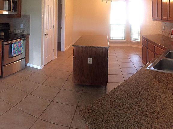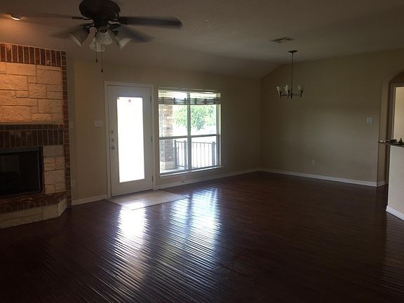 Close to Ft Hood gates, Great Neighborhood! Backyard features a beautiful stone surrounded patio with built-in Austin stone fireplace--must see! Kitchen: granite counter tops, stainless steel appliances, refrigerator included, island, tile floors, solid wood cabinets with built in trash cans and spice rack. Living room/Dining room: hardwood floors, stone fireplace. Laundry room inside, includes storage Master bathroom: whirl pool tub, separate shower, double sinks-raised height counter top, large walk in closet. Bedrooms: light/ceiling fan, 1 extra bedroom has a walk-in closet, the other 2 have hand painted wall murals (I can have them painted over if necessary), large sized bedrooms. Large Master bedroom: fits king size bed, long dresser, chest of drawers, and two night stands very well. Front: 2 car garage, many mature trees, front, back, & side yard sprinkler system. White stone and brick combination on all 4 sides of home.
