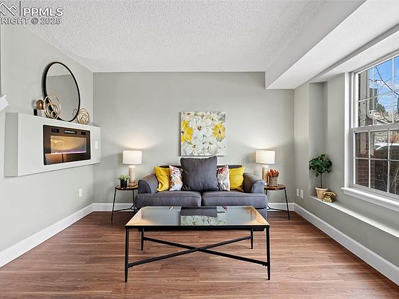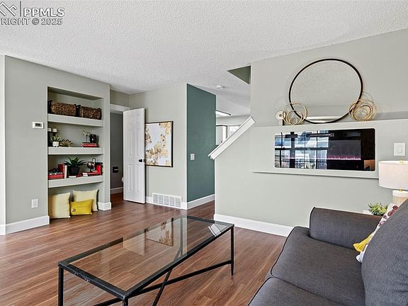 D20 School District Townhouse Completed From The Studs! Step inside and feel instantly at home in this stunning four bedroom, three bath abode where modern amenities couple with cozy comfort. Entering the home you are welcomed by the fresh wood flooring, new paint and abundant natural sunlight. The living room is anchored by a sleek, modern fireplace that lets you set the perfect ambiance with a touch of a remote. Whatever the mood may be, your remote allows you to change both the flame color and glowing rocks to match. Just beyond the staircase, a stylish eat-in kitchen awaits boasting Quartz countertops, new stainless steel appliances, and crisp new cabinetry create a sophisticated space to cook and gather. From the sink, gaze out the kitchen window to breathtaking Pikes Peak views, a daily reminder of Colorado’s natural beauty. Walk out onto your fenced patio perfect for a friendly pet or entertaining guests. Upstairs, tranquility continues with three inviting bedrooms. The primary suite is a retreat, offering generous space and attached bath adorned by a brand-new skylight, dual stone countertop vanities, and walk-in shower. The two additional bedrooms, each with their own Pikes Peak views. Venture downstairs to discover additional square footage which includes a spacious family room in the finished basement. ideal for movie nights, home gym, or extra entertaining space. The basement also features a large bedroom, a fully remodeled bathroom, and dedicated laundry room. There is even a cozy nook under the stairs that is perfect for extra storage or a creative hideaway. Additionally with a brand-new roof, gutters, new kitchen and upstairs" bedroom windows and sliding glass door, this home is truly maintenance free. The two designated parking spaces right in front adds extra convenience. Nestled in the prime Briargate location where you have unmatched accessibility: shopping, restaurants, walking trails, & more. This home offers it all! Schedule a showing today!