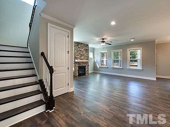 Very popular Open floor plan w/Up & Down Masters on a .736 wooded lot. Beautiful Craftsman front elevation. Gourmet Kitchen with Stainless Steel Appliances, big Island, Large Pantry, Granite counters & ceramic back splash. Huge Great Rm w/FP. Spacious BRs w/walkin closets, beautiful tiled baths too. Engineered Hardwoods and crown molding thruout lower level except Laundry comes w/tile floors. Screened in porch overlooking a private backyard.