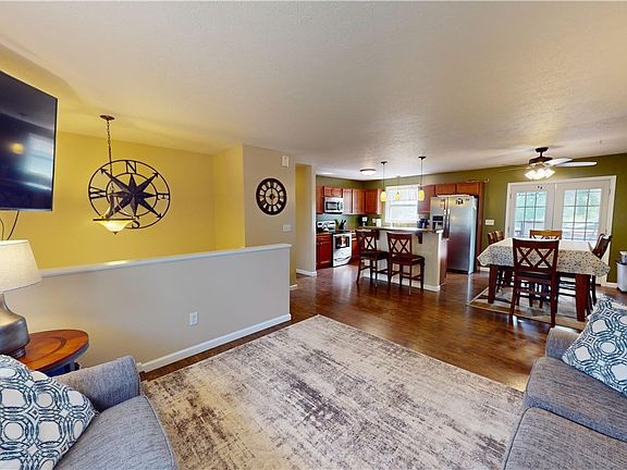 Spacious living both inside and out with a large lot and plenty of updates! The main floor features an open concept layout, combining the kitchen, living room, and dining room. This design allows for easy flow and communication between spaces, ideal for gatherings and everyday living. Kitchen is equipped with a large pantry, center island with seating and all appliances. French doors in the dining area lead out to a deck with a pergola, offering a shaded and private outdoor space. Three bedrooms are located on the main floor, all of good size with great closet spaces. A full bathroom is available on this level too, convenient for the bedrooms and guests. A spacious owner's suite that includes a full bathroom is ideal for privacy, as it is separate from the other bedrooms. You will also enjoy a dedicated space that can be used for working from home, studying, or as a hobby room. The lower level also includes the large and well-equipped laundry room, making laundry tasks easier. There is also a family room providing additional living space and includes a walk-out to the back patio, enhancing indoor-outdoor living options. The property sits on 2.57 acres, offering plenty of space for outdoor activities and potential landscaping projects. There is an awesome spot for outdoor gatherings around a fire, great for cooler evenings. A 16x10 shed is available for additional storage, perfect for gardening tools or outdoor equipment. - The new fence encloses a partial area of the backyard, with three gates for easy access. Oversized Garage measuring 36x24, this provides extra space for vehicles, storage, or a workshop area. Recent updates include fence, newer septic system, siding, roof, furnace, AC, and updates to the owner's suite bath. This home is in immaculate condition, both inside and out, making it ready for new homeowners to move in without needing significant updates or renovation