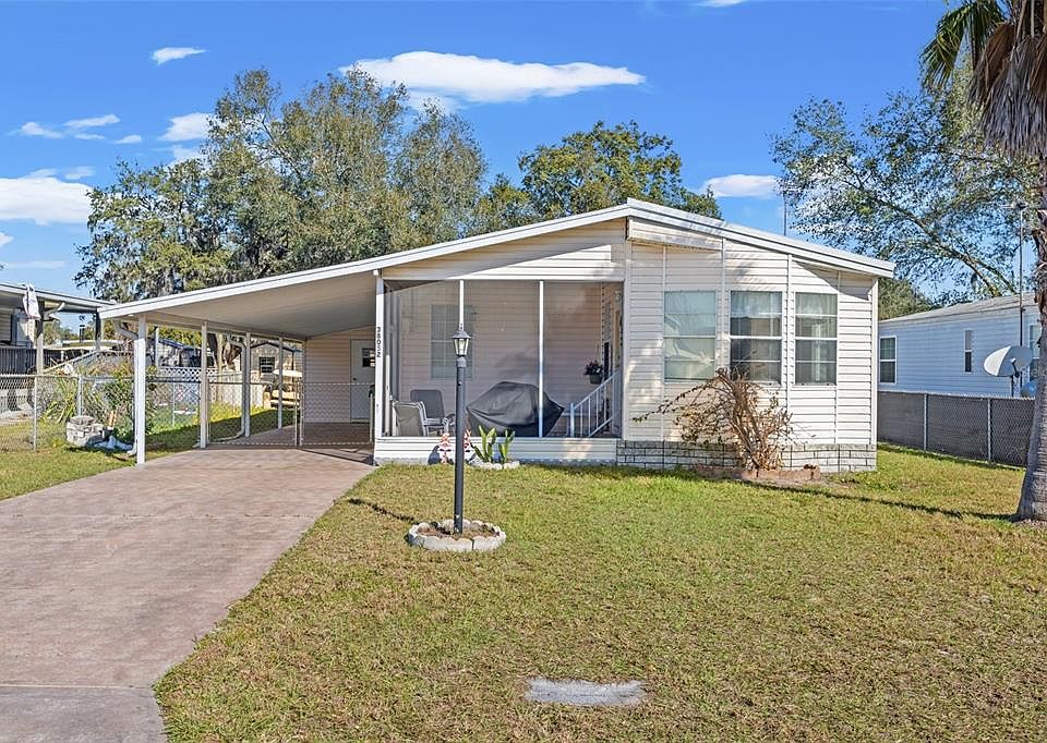 COME ONE COME ALL NO HOA NO AGE RESTRICTIONS. THIS LIGHT, BRIGHT, AND CHEERY TWO BEDROOM TWO BATH HOME PLUS LARGE BONUS ROOM THAT COULD EASILY BE THIRD BEDROOM, OFFICE, PLAY AREA, CRAFT OR SECOND LIVING AREA. This home has been meticulously maintained with plenty of upgrades made by the current owners and comes furnished! Interior of home, including ceilings have been painted. Carpet was installed within the last three years, Kitchen has a breakfast nook, plenty of cabinet and counter space, separate dining area and all appliances are included. Large living area is just off of the kitchen has plenty of room for furnishings, and is tastefully decorated. Master suite sits to the back of the home with plenty of closet space. Master bath has been updated with new vanity and walk in shower. Guest bedroom sits to the opposite side of master and guest bath has also been updated with new vanity area. To the front of the home you will find the bonus area that can double as third bedroom. Outside you’ll enjoy your morning coffee or evening drink on the screened enclosed porch at the front of the home. Large carport so you will never get wet unloading groceries. To the back of the carport sits your laundry shed that has plenty of storage space for your outdoor tools. Fenced in side and back yards will keep your pets in and other critters out. All of this with a convenient location! Easy access to Highway 301, Highway 39, or Highway 54 making easy commutes to Tampa, Wesley Chapel, Brandon, Lakeland, Orlando, Plant City or Dade City. Making shopping, dining, entertainment, and medical centers within miles of your home.