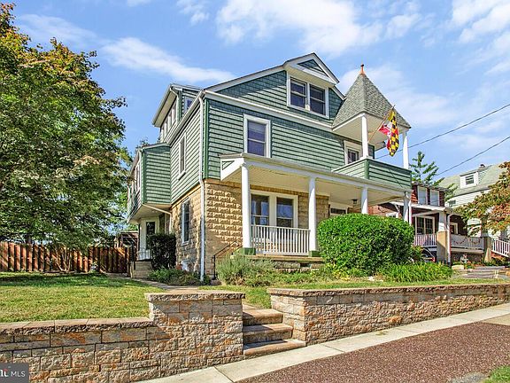 Gracious Victorian with two balconies and a turret! Beautifully situated high above the street on a double lot in charming Mount Rainier! Lovingly improved with a new retaining wall, walkway and permeable driveway & sidewalk. Energy efficiency addressed with a high-end heating system, Pella windows, new siding and the Solar Panels are owned outright! Welcoming covered front porch. Gorgeous entry door and transom above, both with beveled glass windows. Classic foyer with a decorative mantle, 9' ceilings and gorgeous heart pine floors have just been refinished! 5-panel pocket doors lead to the spacious living room with 3 windows. The side entry door also has a transom for natural light into the hallway. There's a coat closet and a storage closet Harry Potter would love - plus the main level half bath is a great size. The dining room has oak floors, a Queen Ann-style bay window and built-in shelving for storage and display. The spacious and well-organized kitchen is the heart of this home with its Corian counters, new induction cooktop and high-end stainless steel fridge! Useful prep sink has instant hot water. At back is the breakfast nook and laundry room with a vaulted ceiling. A sliding glass door leads to the spacious screened porch you have been dreaming of- What a lovely spot for alfresco dining! The porch has a brand new roof and gutters too. Heading upstairs notice the decorative leaf pattern on the original wooden newel post. A super useful built-in area was added to the windowed-end of the upstairs hallway - great for crafting. Don't miss the stained glass light fixture and lovely medallion on the ceiling. The second floor has four spacious bedrooms and a full bath. The front bedroom has access to a lovely balcony plus there is a doorway between the two front bedrooms to connect them yet maintain privacy. The left rear bedroom enjoys its own private balcony too! The top level is one big 36' room divided by the open stairwell. Don't miss the charming turret space! A mini-split was added to this bedroom to improve comfort. There's lot's of storage under the eaves and additional storage space behind the closets that also holds the A/C unit. What a big beautiful yard! Plenty of room for you to plant, play and entertain! Fully fenced rear yard with a useful shed. Lovely trees including Crape Myrtles, Weeping Willows and more! Cellar access is via the back yard and holds the high-end heating/hot water system. Fabulous location near shops & restaurants and public transportation. Don't miss Penny Royal Station and Era Wine Bar and the good old Glut Food Co-op! Send the kids to Joe's Movement Emporium for all their after school and weekend programs. What a gem - you will love living here!