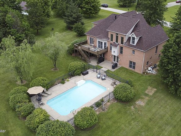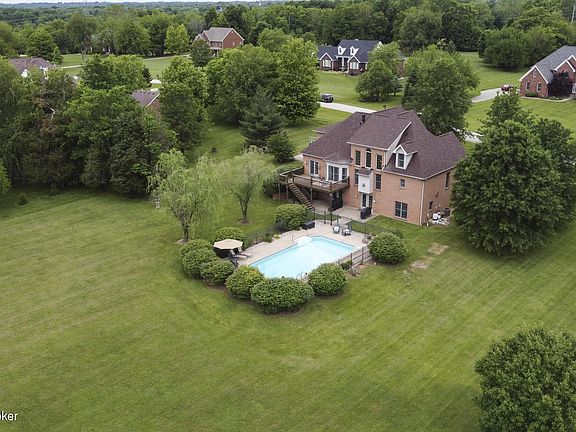 Your private Oldham County oasis awaits! Custom brick walkout with gorgeous inground salt water pool (2018) on 2.28 acres situated on a culdesac. Whether it be a pandemic, big party, or a quiet family night this home won't disappoint! Open foyer and great room greets you with loads of natural light. Owner's suite is on main level with 6 additional bedrooms! Renovated kitchen has new lighting, fixtures, paint, Kitchenaid appliances (gas line added), granite top with bar seating and opens to the breakfast room and sitting area. Formal dining, laundry, and half bath complete main floor. Walkout basement is light-filled and has kitchenette, family room, full bath, and 2 additional bedrooms. Upper level has 4 large bedrooms, 1 full bathroom. BONUS: new roof (5/2021),