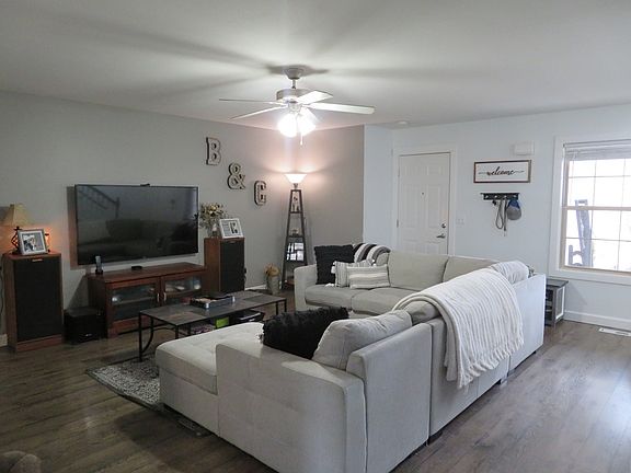 This is a great three bedroom Zerolot home in the popular Balmoral Pointe subdivision. The spacious living room will welcome you home with the new wood laminate flooring and and fresh paint. The kitchen has plenty of cabinet space, work space and a pantry. Full finished basement has a family room/theater, full bath and 3rd bedroom. The family room/Theater has built-in speakers for a great sound. Great for guests to use or maybe a teenager. Upstairs are two bedrooms, a full bath and the laundry room The yard isn't too big which gives you more personal time after work. (The refrigerator does not stay and the projector in the Family Room/Theater is negotiable.) The new blinds will stay along with the Ring doorbell and the Nest thermostat.