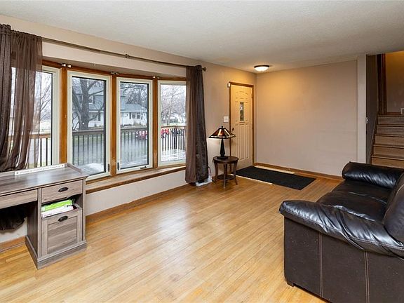 Charming split level in welcoming Lower Beaver Neighborhood in Northwest Des Moines! Original hardwood floors throughout! Entering you're greeted by a spacious front living room with bay window and hardwood floors, that wraps around to the dining area and access to rear sunroom and back yard! The kitchen is roomy, with ample oak cabinetry for storage, and all appliances included. Upstairs, 3 bedrooms centrally located around full bathroom! The lower level features brick detailed fireplace, 4th large bedroom and 3/4 bathroom. The basement is partially finished with a 5th non-conforming bedroom, laundry, and room for storage! Open patio in the back with fully fenced yard, and 2 car detached garage and large front deck to round out this home. Come see today!