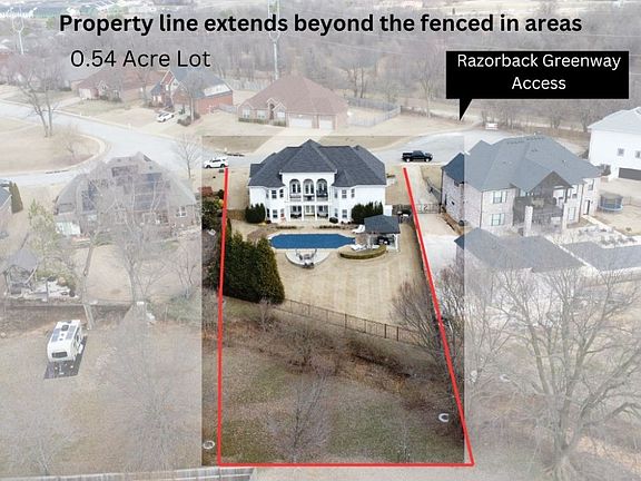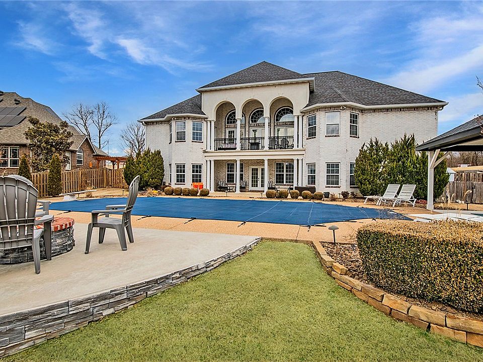 Nestled in the perfect location near the Pinnacle area, AMP concert venue, Top Golf, and bustling shopping centers, this home offers unparalleled convenience. Step out your front door onto the Razorback Greenway Trail for scenic walks or bike rides. Enjoy the luxury of a heated private in-ground pool with a gazebo, patio area, and firepit, all set on over half an acre lot. Inside, discover a ton of updates throughout, including a fully renovated kitchen boasting large kitchen island, quartz countertops, stainless steel appliances, pantry and eat in area. The living room features soaring ceilings, abundant natural light, stacked stone fireplace, built-ins and double doors opening to the balcony overlooking the yard. Entertain effortlessly in the walk-out bonus area or get work done in the study. Large primary bedroom offers a door to the balcony, sitting area, and a spa-like bathroom complete with heated floors, double sinks, walk-in tile shower, jetted tub, and a spacious walk-in closet.