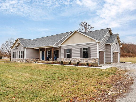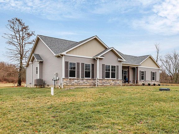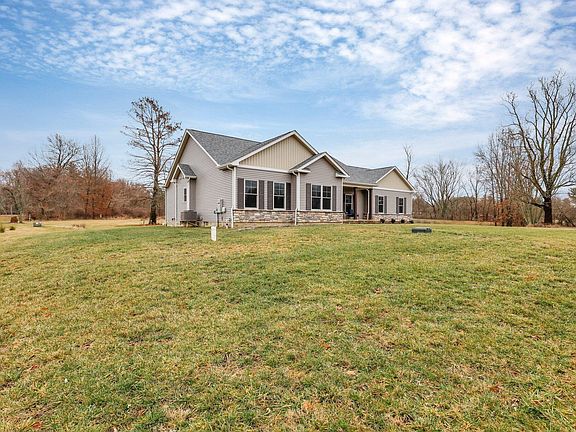 This one checks all the boxes! Stunning custom Kilbarger ranch home on over 4 acres in Bloom Carroll schools. Fantastic floor plan w/ 1st floor laundry/drop zone, open kitchen to oversized great room, home office/study off foyer, spacious bedrooms and large owner suite, 3 car garage w/ extra deep bay, covered back porch w/ fan. Massive full basement w/ bath rough ready to finish. Tons of upgrades incl. LVT flooring throughout, Quartz countertops, solid cherry cabinets, SS appliances w/ gas range, custom stone gas fireplace w/ mantle, double french door office/study w/ accent wall, solid wood doors & custom lighting/fans throughout. This a spectacular almost new build, shows incredibly well & is situated on gorgeous partially wooded lot! 27 min to downtown & 1 mile to the village!