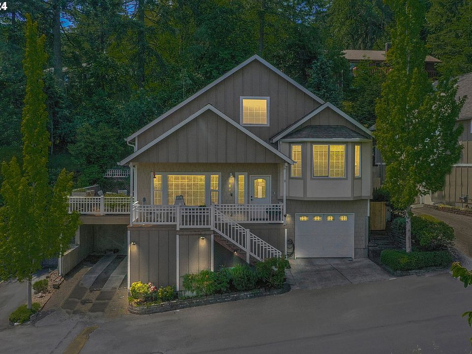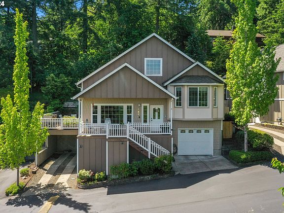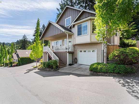 Charming and unique standalone cottage, nestled in a prime South West location with city light views. This 3-bedroom, 2-bath home features acacia hardwood floors, a deeded personal planting area, second bedroom with a Murphy bed acts a flex room, the best lot in the subdivision, handpicked by the original developer. The home has tons of natural light, thanks to soaring vaulted ceilings. The expansive deck off the family room, complete with a built-in hot tub, is perfect for entertaining. Enjoy the serenity of a private patio with two water features, audible from the primary bedroom. The kitchen boasts stainless steel appliances, marble counters, and a breakfast bar. A cozy gas fireplace adorns the family room. The main bath features engineered floors, large modern tile shower with clear glass and jetted tub. The home is equipped with a newer heat pump, dishwasher, and an automatic sprinkler system with drip irrigation. Second parking space with enough to fit large truck and drift boat. The HOA covers front landscaping, common grounds, gutter cleaning, moss treatment for the roof, annual backflow checks, exterior paint, roof, and structure insurance. All you need is a reduced renters insurance policy. Don't miss this opportunity!