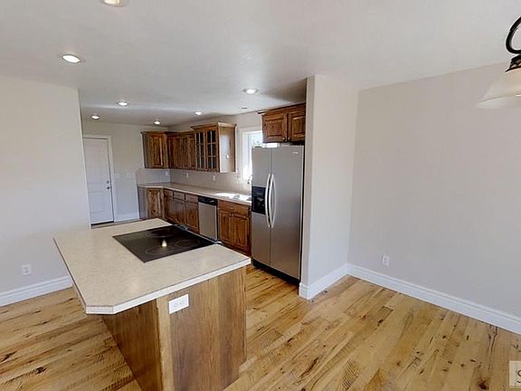 This beautiful, tastefully constructed home, with captivating curb appeal, sits constructed on an oversized 1-acre lot in Rigby â just a short commute from both Idaho Falls & Rexburg! An inviting living room, with a gorgeous fireplace & built in media nook, gives way to a spacious kitchen & adjacent dining area showcasing beautiful hardwood floors, custom cabinets, sprawling countertops & a set of sleek appliances. This heart of the home opens to the expansive yard with great space for enjoying family BBQs, yard games & relaxing evenings watching the setting sun. A private bath sits off the large master suite & features a relaxing jetted tub, separate shower & roomy dual sink vanity. An additional 6 bedrooms (2 up, 4 down) complete the individual living spaces for each household member in this finished 3,200+ sq. ft. home. Filled with grand storage spaces (extra shelving & hanging rods in walk-in closets, bonus linen storage & a designated storage room) buyers will love the options for stowing their belongings indoors & out of sight. This amazing residence is filled with class inside & out & offers an ideal escape for a bit of solitude away from the business of the city!