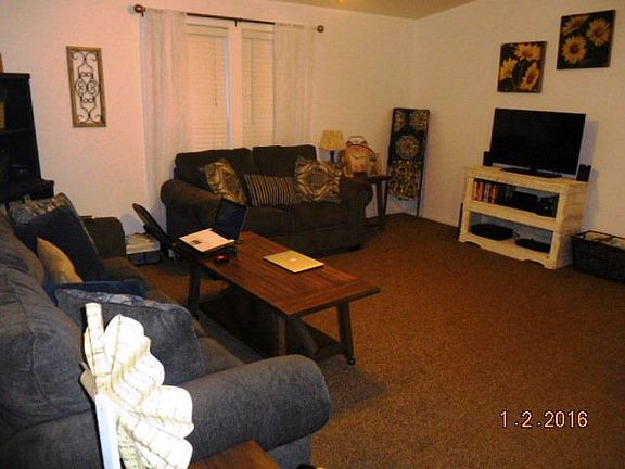 HOME HAS A REALLY CUTE FLOORPLAN WITH A FORMAL LIVING ROOM, FAMILY ROOM, GREAT OPEN KITCHEN WITH A CENTER BAR / SITTING AREA, DINING ROOM AREA AND HUGE BUILT IN DESK AREA. THE MASTER HAS A GREAT SIZED BATH WITH A GARDEN TUB, SHOWER AND WALK IN CLOSET. THERE ARE 2 OTHER BEDROOMS ON THE OPPOSITE SIDE OF THE HOME (ONE CURRENTLY USED FOR EXERCISE ROOM/STORAGE. SPARE BATH IS CUTE AS WELL. I REALLY LIKE THE FLOOR PLAN OFFERED WITH THIS HOME. MAKE AN APPT. AND TAKE A LOOK! HOME WAS RECENTLY REMODELED WITH NEW CARPET IN JULY 15 AND NEW INTERIOR PAINT, ALSO IN JULY 15. LAUNDRY HAS GREAT STORAGE!