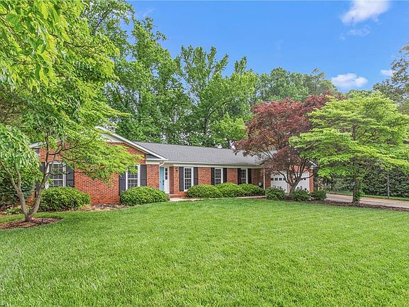 Enjoy easy, single-level living in one of Greensboro's most sought-after neighborhoods! This updated ranch-style home sits on a spacious 0.72-acre lot with a private, wooded backyard and a massive three-tiered deck—perfect for hosting, relaxing, or soaking in the scenery. Step inside to find two large living areas, two dining spaces (including a formal dining room), and a cozy wood-burning fireplace. You'll love the recent updates: stylish LVP flooring, fresh paint, modern countertops, and a beautifully renovated primary bathroom. With an oversized garage, a separate laundry room, and plenty of storage throughout, this home checks all the boxes. Located in the heart of The Cardinal, PTI Airport, I-840, and Hwy 73. Enjoy tree-lined streets, a peaceful setting, and access to optional golf, tennis, and swimming. Don't miss this rare opportunity in a truly standout neighborhood!