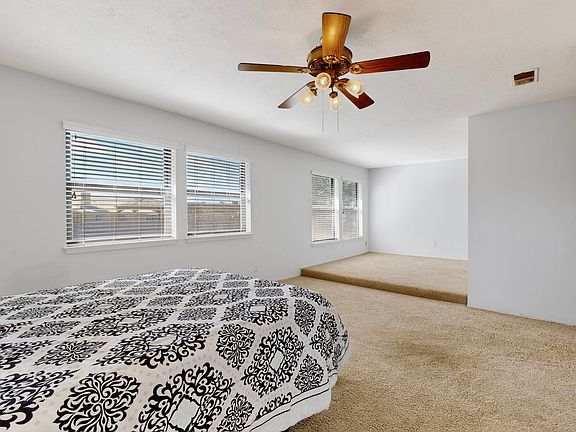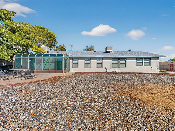 Welcome to 3806 Saint Andrews in Panorama Heights. This well-maintained 3-bedroom, 2.5-bath home sits on a spacious lot with mature trees and shrubs, offering versatile outdoor space. Inside, you'll find a generous living area with a wood-burning fireplace and a large, functional kitchen that opens to the dining and living spaces. The primary room includes a spacious sitting area. A sunroom spans the back, ideal for additional living space, storage, or entertaining. The RV pad and storage shed out back provide added flexibility. A new roof installed in 2023 offers lasting value. Conveniently located in Rio Rancho, this move-in-ready home is close to shopping, dining, and services.