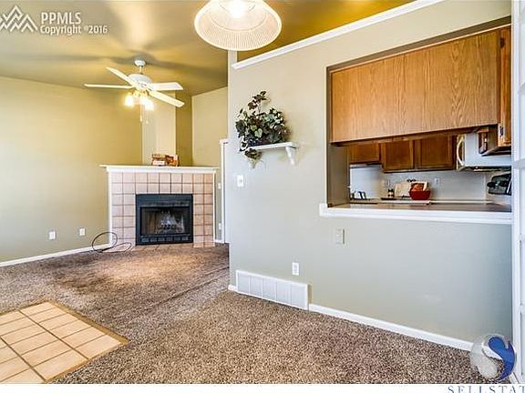 Adorable 1 bedroom/1 bath single level townhome in the popular Briargate and D20 area. This home would be perfect for a first-time homebuyer, someone who wants to downsize or as an investment property! Step inside to the ceramic tile entry area and living room with wood burning fireplace. The kitchen features a fridge, flat top stove, solid surface counters, microwave, dishwasher and a pass through to the dining area which comes complete with built-ins. Master bedroom has a built-in desk and shelving, walk-out to the back