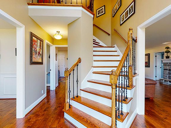 This beautiful home offers an abundance of space on both the interior as well as the 3.1 acres of space on the exterior. Showcasing true pride in home ownership and is sure to wow. In the last few years this home has been lovingly updated with hardwood floor through the main floor. The eat-in kitchen was remodeled just a few years ago with updated cabinets, new island, hardware, Kitchenaid appliances - gas range and double ovens. The kitchen offers access to the rear covered deck that was recently redone and is ready to enjoy this summer. The kitchen dining area opens to a large great room with a fireplace and access to the main floor private office. The office has built in cabinets and a great view with windows offering both front and rear views of the yard. The staircase to the second floor has iron balusters that have been added and the main floor entry is open to both the formal dining room and great room. Upstairs are three spare bedrooms and the master suite with en suite bath. The master is good size with a double tray ceiling, crown molding and an en suite bath. The bath has a walk-in closet, new double bowl bath vanity with granite top, whirlpool tub and a separate shower. The home does have a second floor laundry for extra convenience. The lower level is ready for entertaining in the walkout basement. The basement offers an entertaining bar with ample seating, good size living room and additional room currently used as a guest room (is not in bedroom count and does not meet ANSi requirements for a bedroom). There are two unfinished spaces for storage or extra space to finish later. The walkout has a large patio that leads out to the rear yard for access to the pool and view of of the fresh landscaping area. Some additional extras include: HVAC 1.5 yrs old, water heater 2017, new baseboards and door casings, LED lighting, oil rubbed bronze hardware.