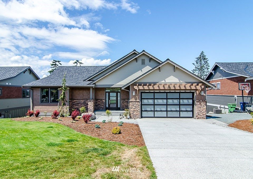 A spec house on steriods and PROTECTED views of Guemes Channel & the islands. The main level living comforts immediately with stone gas fireplace, hardwood flrs, generously sized kitchen with Kitchenaid ss appl & big granite counter island. The master features own access to oversized deck & stunning en-suite, walk-in closet with w/d hookup. Lower lvl complete with family rm, 2 bdrms, full bth, laundry rm plus tons of storage. You will not be disappointed by all this home has to offer!
