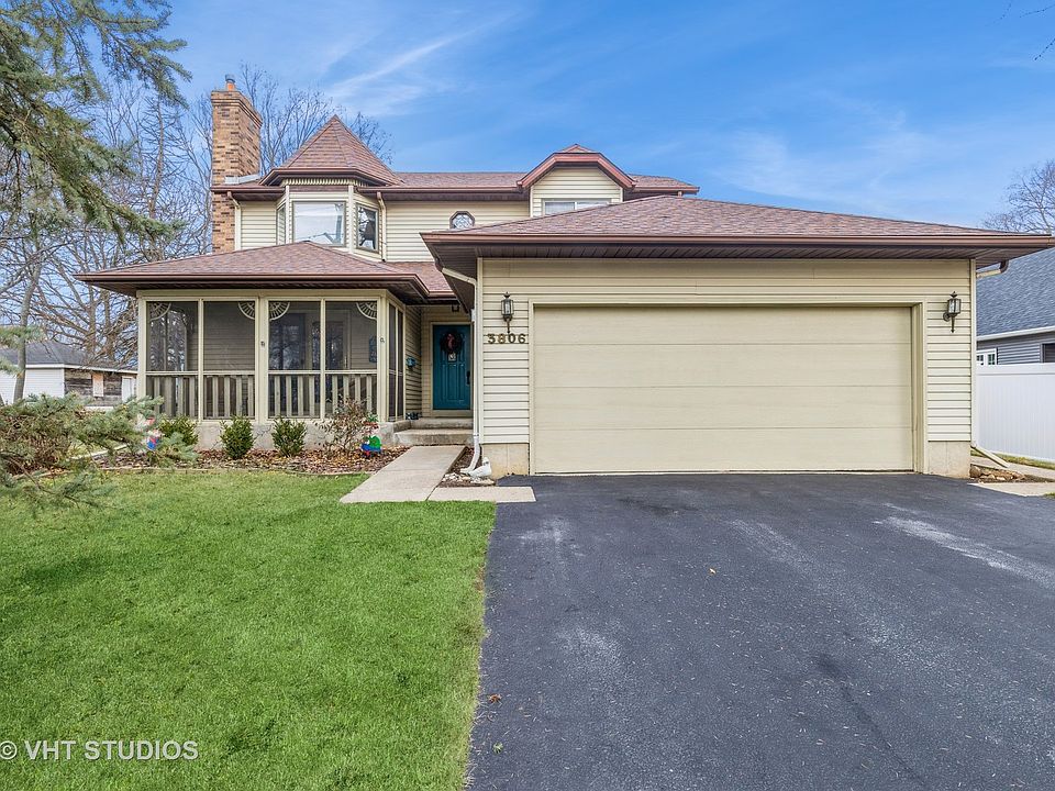 This exquisite, custom-built two-story residence offers a harmonious blend of classic architecture and modern convenience. The inviting screened-in front porch beckons you into the heart of the home, where the spacious living room, adorned with crown molding, features a cozy gas-start wood-burning fireplace. The formal dining room, accessible through elegant double doors, is bathed in natural light from a large window overlooking the serene backyard. The well-appointed kitchen boasts sleek stainless steel appliances, ample counter space, a practical breakfast bar, and a separate pantry. The hair salon with a half bath can easily convert into a mudroom, laundry room, workshop or private office, add to the home's functional appeal. The second floor offers three generously sized bedrooms, including a luxurious primary suite with a tranquil bay window, a ceiling fan, a walk-in closet, and an en-suite bathroom. The second bedroom features a charming built-in window seat with storage, while both guest bedrooms offer ample closet space and ceiling fans. The finished basement provides a versatile space for relaxation or entertainment, complete with a wet bar. Plenty of room for a home gym or additional living area. A convenient half-bathroom with plumbing in place for a future shower and a separate laundry room with ample storage enhance the basement's functionality. Located within a short stroll of historic downtown McHenry, residents can easily explore the picturesque Riverwalk, indulge in diverse dining options, and enjoy convenient shopping. The home's proximity to the Chain-O-Lakes, the Fox River, and Moraine Hills State Park offers endless opportunities for outdoor recreation and natural beauty.