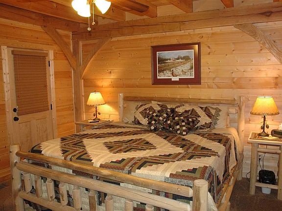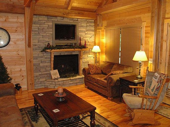 Absolutely beautiful timber frame home with easy, paved road access. Exceptionally well kept. All wood interior and tasteful decorations make this cozy cabin a real showpiece. Two private master suites, king size beds, three cable TVs & Internet, and an outdoor hot tub make this the perfect home for a mountain getaway. Other prominent features includes the expertly crafted beam and wood work, custom tile in the upstairs shower and bath, and the hardwood flooring. Attractive, mature landscaping frames the home and the circular, surfaced drive. There is a deck around the entire cabin which is covered on the front and both sides. the porches are accented with a swing, a couple of rocking chairs, a patio set, and a gas grill. The cabin has only been used as a second home for the last ten years. Being sold fully furnished.