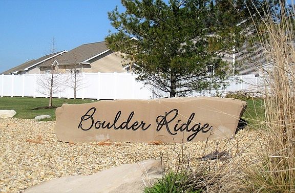 Rare find just listed... 2-story with a 1st floor private master suite! This home is located in 'The Reserve' at popular Boulder Ridge, just down the street from the huge Sunset Park (18-acres!) Home has exceptional curb appeal w/brick accented foundation & full covered columned front porch. Inside is an open plan, French doors to the 'formal-flex' room (living/office/dining), bright kitchen w/bay window dinette area, rich color cabinetry & counters, stainless appliances. Dramatic 1.5 story great room & grand staircase. Foyer w/hardwood, spacious laundry room w/cabinets & folding counter. Master suite w/tall coffered ceiling, WIC, double sinks, jetted tub & separate shower. This plan has a huge full basement, that has had a full finish-out too, over-sized family/rec room, 4th bedroom, hobby/project/bonus room & full bath (plus storage/mech room). Backyard w/true Southern exposure, neighbor privacy fence & patio. This house offers a lot for the money, hurry before it's gone!