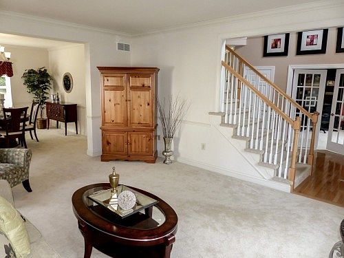 Beautifully maintained Chadbourne model located in the sought after community of The Ridings of Buckingham. As you drive up, you will notice the tremendous curb appeal. Once inside, this home does not disappoint. The welcoming 2 story entrance foyer features gleaming hardwood flooring, elegant turned staircase and custom moldings all contributing to a wonderful first impression. The spacious formal living room offers a tranquil retreat and flows nicely into the large formal dining room. Enter the open gourmet kitchen and take notice of the custom upgrades. Gorgeous granite counter tops, large island with breakfast bar, stainless steel appliances, beverage station complete with sliding wine rack and book shelf to house bottles of sprits for entertaining. This kitchen also has above and below counter lighting as well as recessed ceiling lighting and dual chandeliers. The breakfast area leads out to the lush tree lined back yard by sliding glass doors. Back inside, take a look at the family room featuring vaulted ceilings, sky lights, new carpeting, cozy gas fireplace with marble surround and recessed lighting all looking over the priceless back yard. The conveniently located study with bright bay window can be found behind double French glass doors. A nicely decorated powder room and laundry room round off the main level. Upstairs, double French doors leading to the master bedroom retreat offering vaulted ceilings, his and her walk in closets, and luxurious spa like bath with new double granite vanity and relaxing garden tub. The three remaining bedrooms are wonderfully decorated and feature double closets. The hall bath is tiled with double vanity and tub/shower. There is also a large unfinished lower level and two car side entry garage. This neighborhood is the newest community closest to the Borough, downtown Doylestown and offers a walking/biking path. It is close to many parks, all major roadways, shopping, Philadelphia and New York. This home is truly one of a kind and ready to move right in!