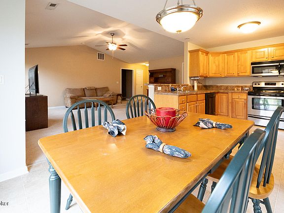 Welcome to this charming, home nestled in the serene surroundings of Crown Ridge. Boasting a prime location backing up to lush woods, this residence offers the perfect blend of comfort, style, and privacy. As you step inside, you'll be greeted by a warm and inviting atmosphere, thanks to the beautiful, rich colors that adorn the interior. The well-designed layout features a split 3 bedroom/2 full bath configuration, providing both space and functionality for comfortable living. The heart of the home lies in its open floor plan, highlighted by a spacious kitchen complete with a convenient breakfast bar. Ideal for hosting gatherings, the kitchen is a chef's dream with ample counter space, dark wood cabinetry (including a pantry and two lazy susan), and a suite of stainless steel appliances that stay with the property. The master bedroom is a retreat in itself, offering an oversized walk-in closet and a sense of tranquility. Tilt-in windows and vaulted ceilings contribute to the bright and airy ambiance throughout the home.