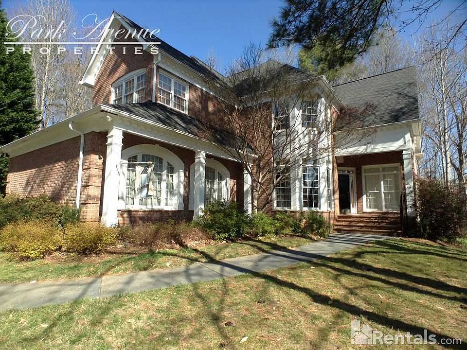 Coming Available 4/15/2017. This lovely 4-bedroom, 2.5-bath brick home has established custom landscaping surrounded by shade trees. The home has an abundance of windows allowing for bright natural lighting, heavy crown molding and hardwood flooring throughout. Features include a living room with a fireplace, a formal dining room accented with wainscoting, and a family room overlooking the backyard. The chef's kitchen boasts espresso cabinetry, granite counter tops, a custom tile backsplash, stainless-steel appliances, including an oven/microwave, an island with a gas grill, and a breakfast nook. The upper level houses all of the bedrooms, including the master suite and private bath complete with a dual-sink vanity, a soaking tub and a separate shower. Enjoy a full view of the wooded backyard with terraced landscaping while relaxing on the screened, tiled patio and open deck. Community amenities include a pool and tennis courts. Zoned for GREAT schools! Located in the north Charlotte suburbs, this home is only short drive from excellent shopping, dining and entertainment in the North Lake, Lake Norman and Concord Mills areas. Close to several parks and golf, for hours of recreation! Less than a half hour commute from Uptown! Pets conditional.