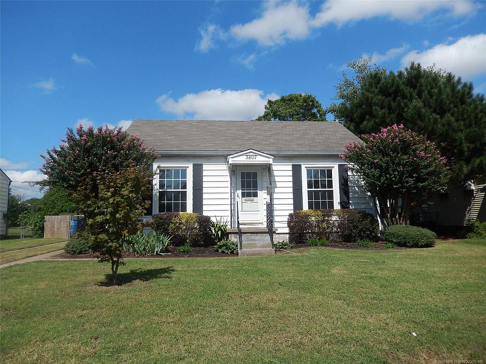 Midtown Bungalow! Charming two bedroom, one bath home with one car detached garage. Hardwood flooring and tile floors, no carpet, granite in kitchen and bath. Quiet neighborhood with mature trees, conveniently located minutes from Tulsa Fairgrounds, University of Tulsa, and has quick access to Broken Arrow Expressway.