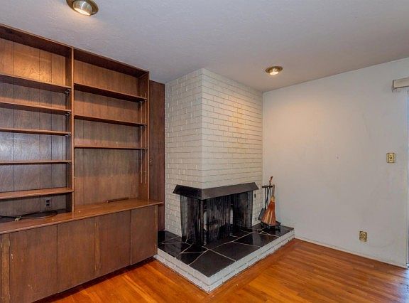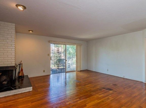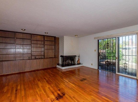 Traditional home with charm! This 4 bedroom, 2 bathroom home is move-in ready. Seller has pulled up carpet to display gorgeous original hard wood flooring in living room, hallway and 3 of the 4 bedrooms, a few areas of retouching/patching may be needed. The living room is perfect to entertain in with a gorgeous corner fire place and floor to ceiling built in cabinets with canned lighting. The refrigerator, washer and dryer are included in the sale with no warranty or added value. The backyard has several different types of fruit trees to enjoy, a bench, and planters.