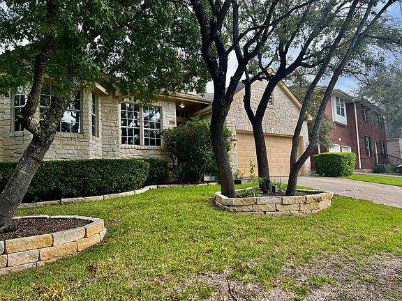 Beautiful move in ready home in Steiner Ranch. Open floor plan, kitchen overlooking the living room and breakfast area. High ceilings & abundant natural light throughout. The kitchen is spacious with a center island, breakfast bar, breakfast area & formal dining w/ a skylight plus granite counter tops & stainless steel appliances. Hard tile & wood flooring throughout. The master suite offers 2 walk-in closets, double vanities, garden tub & separate shower. The large mature trees & wood fence provide ample shade & privacy in the backyard. Washer & dryer included. Office/study,plus 3 bedrooms and 2 full baths, 2 car garage & community amenities! Sprinkler System available. Tenant is responsible for lawn maintenance. pets are allowed, pet deposit of $250 per pet applys. $25 monthly pet fee per pet.