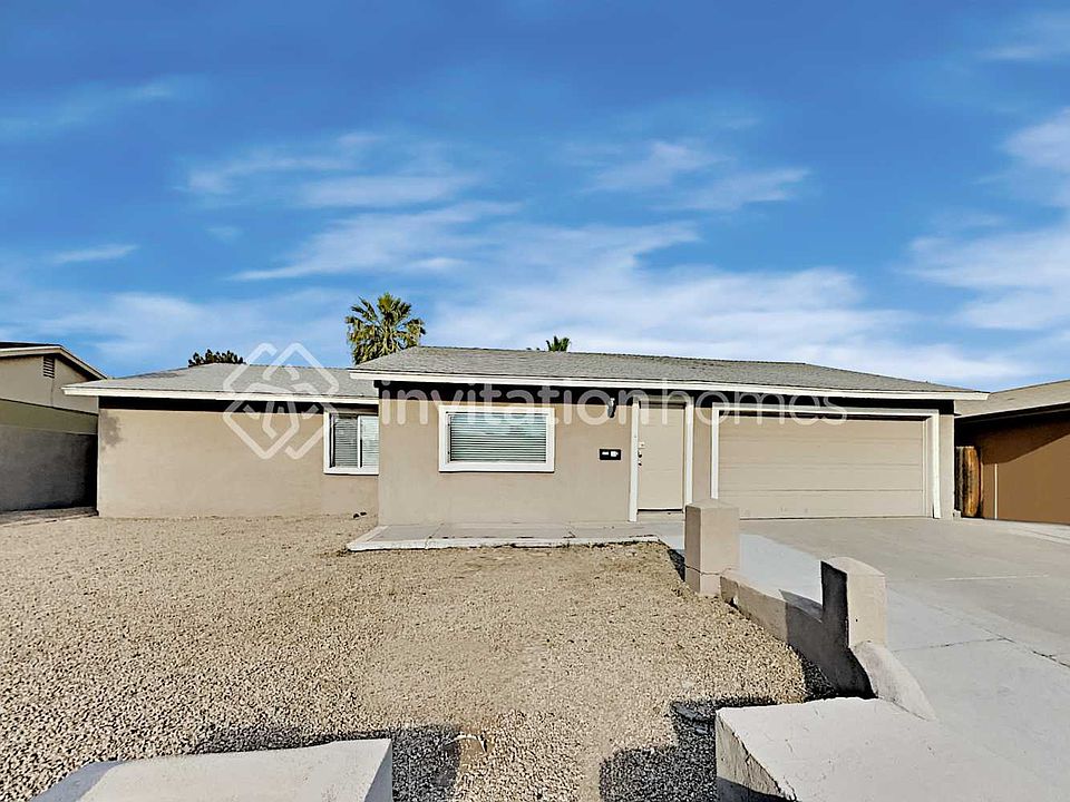 Home Features and Amenities: Air Conditioning, Fenced Yard, Garage, Long Lease Terms, Open Floorplan, Patio, Pet Friendly, Primary Bedroom on Main, Single Story House, Smart Home, Tile, W/D Hookups, and professionally managed by Invitation Homes.