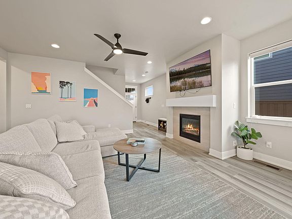 This stunning home backs to a trail system and the canal. Enjoy the sounds of rushing water in the summertime and the peace and quite during the winter seasons form this comfortable two story living with an open concept dining/kitchen and great room on the first floor and three cozy bedrooms plus a spacious loft on the second floor. Enjoy the covered patio for any and all occasions. The kitchen and all bathrooms offer solid quartz counters and luxury wood laminate flooring throughout. As in all Pahlisch Homes, well-crafted finishes are used throughout. Let the HOA care for your front yard and enjoy summers in your community swimming pool! Keep cool with the front yard landscaping and AC with a fully landscaped backyard that requires little to no maintenance. Homeowners and residents here will have access to a full spectrum of private recreational amenities including swimming pools, parks, green spaces, and paved paths in this highly coveted community!