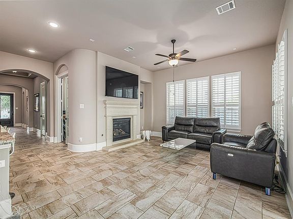Step into luxury at 3807 Ponderosa Peak with solar panels, high ceilings, and designer touches throughout. This home features a private study, family room with fireplace, and plantation shutters. The gourmet kitchen is a chef's dream with a spacious island, designer backsplash, and ample storage. The primary suite offers a large walk-in closet and private bathroom with dual sinks, separate shower, and soaking tub. Secondary bedrooms have generous closet space. Outside, a covered patio overlooks the beautiful backyard, perfect for outdoor entertaining.