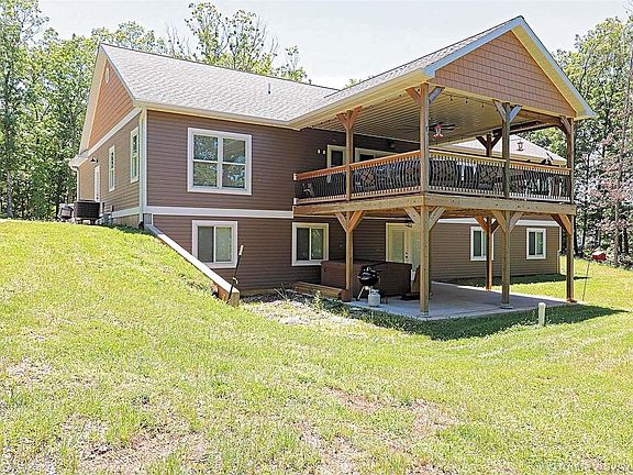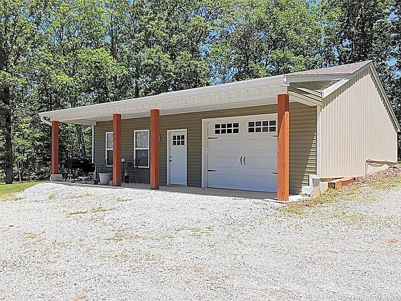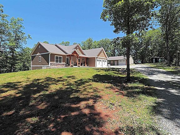 Simply gorgeous! Energy efficient too! Utilities cost less than $200 month (including the detached garage) Great room with granite covered center island in kitchen. Stone fireplace in living area with wood floors and vaulted ceiling. Split bedroom floor plan. Unfinished walk-out basement with lots of natural light and big patio. Huge 20x20 covered deck overlooking the 5 acre wooded tract. Detached garage includes an apartment with kitchen, bath and laundry hook-up. Beautiful place.