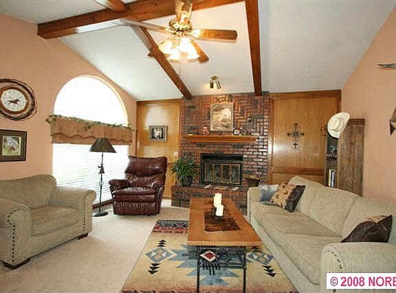 Updated! Large family room with beamed vaulted ceilings and fireplace. Large kitchen, master suite has separate tub and shower. Huge backyard. Very cute!