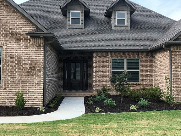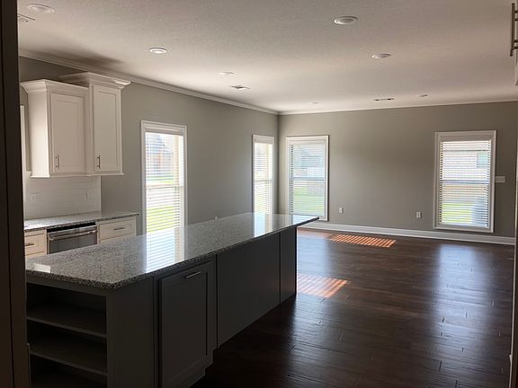 This spacious new construction features an open floor plan which is perfect for any family. The large family room is lined with windows down one side which lead to a door that opens out onto a large covered porch with a tile floor. The dining room sits at the end of the living room and then opens up to the large kitchen with a long bar that accommodates up to 5 stools. The kitchen has lots of cabinets as well as a large pantry, and features a range with oven, a wall oven, and a built-in microwave. Counter tops are granite and have a beautiful subway tile backsplash. Through the garage you enter into large mudroom with built in bench and coat rack with storage, from there you can go straight into the large laundry room with built in cabinets or hang a left and head into the kitchen. The quite master suite is located on the back of the house with stunning tray ceilings and lots of natural light. The master bath features a comfy soaking tub and a large walk in shower with a frameless glass door. The spacious walk in closet will hold all your clothing for every season of the year. Situated up the hall to the front of the house are the other 3 bedrooms which share two separate bathrooms with large vanities and fiberglass tub and showers. Each of these spacious bedrooms has ample closet space. One bedroom even has two separate closets, which would be perfect for that teenage daughter, or if a relative resided in the house. The covered porch was constructed in a manner that it could be easily be converted to a screened in porch or a glassed sunroom if desired. There is also a large patio one step below the porch level that is a great place for the grill and another sitting area that would be shaded in the afternoon.