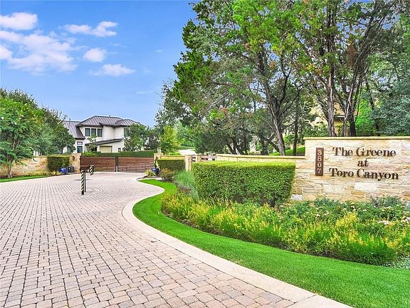 This great Lock & Leave Property is situated on a Large Premium Greenbelt View Lot within the Gated jewel box community of The Greene At Toro Canyon- a collection of 10 exclusive Single Family Residences that follow a Site-Plan Condominium Regime. This property is one of only two properties within the community that is permitted to have a pool - No other pools can be built per current HOA and impervious cover requirements. The property also features recently updated Burnished Brass Light Fixtures from Circa Lighting in the Formal Dining, Kitchen Island, Family Dining, Master Bath & Downstairs Guest Bath. The Kitchen features a 6 Burner Stainless Gas Cooktop, Built in Refrigerator, Double Ovens, & Microwave in addition to a Wine Bar with Wine Refrigerator. Great Separation between the bedrooms with the Primary Bedroom Downstairs in addition to a secondary bedroom with direct access to the back covered patio & pool area. Upstairs are 2 additional bedrooms that share a jack & jill format bath in addition to a Game Room and separate Media Room pre-wired for sound & a ceiling mounted projection system if desired. Located minutes away from the Austin Country Club, Jack Allen's Restaurant and Davenport Village Shopping, Restaurants & Coffee. EZ Access to Loop 360 or cut through the Hills for a scenic trip to Downtown Austin. EZ Show as property is currently Vacant - Homeowners within The Greene At Toro Canyon are individually responsible for all maintenance associated with their individual property, however, the HOA included lawn service cuts the Front & Back Yard of all properties in addition to the common area's to maintain a consistent look throughout the community. All Home Owners are required to utilize their Garage for their primary parking needs.