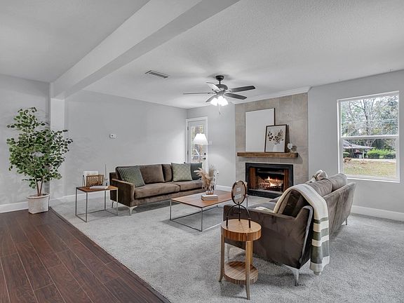 Move in ready home on a large, fenced in corner lot! Brand new AC Jan 2024! This 3/1 offers a ton of space. Inside are 3 bedrooms, and a bonus room. In addition to the 1493 square feet of heated and cooled space, there is 200 sq foot sunroom that is already wired for a window unit if the new owner desires. The home has brand new Stainmaster carpet in the living and bedrooms and a dark laminate through the rest of the living spaces. The kitchen has brand new appliances and white shaker cabinets. The bathroom has been recently updated and there is new paint and light fixtures throughout the home. The siding is hardie board and the windows are new as of 2017. Home has a metal roof and a brand new water heater and new AC! Come see it today!