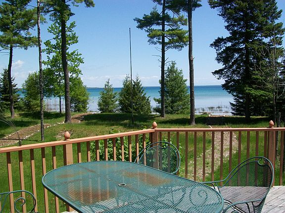 This 1995 sq. ft., 3-bdrm, and 2 full bathroom home has many wonderful features to it. The kitchen & dining area are together in the middle of the house with a large picture window looking out over the deck, and a beautiful yard to the east. There's a large screened porch on the north end of the house. There are hardwood floors in every room plus a lot of high-quality glass picture windows with a view of Lake Michigan, Garden and Hog Islands. There are decks on three sides of the house.