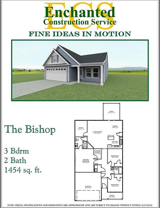 *Inside of home pictured is not actual home but an example of the home once completed* Don't miss this opportunity for a brand new rancher w/ craftsman style exterior. The best part is the lot, imagine grilling on your 12' x 12' uncovered patio and not having to feel like your in your neighbors yard, or being able to play catch with your children without feeling cramped. If this is you then come on down. We are #makingnewhomesaffordableagain with the Enchanted advantage series 1. This house, the Bishop comes with standard 30 year Architectural shingles, a Lenox 14 Seer Heat pump, 1 car garage, sodded yards up to 2000 sqft, all with the ability to pick your own colors, countertops, and finish of fixtures if selected before framing.