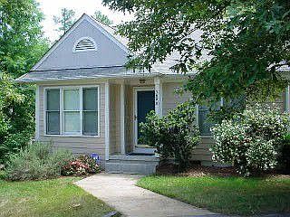 End-Unit townhome on a quiet, tree-lined cul-de-sac, just minutes from Triangle Town Center Mall and 540. Two bedrooms, two full baths. Gas-log fireplace and French doors to big private deck & storage shed. Vaulted ceilings, plant shelves. New carpet - great condition. Owner is licensed REALTOR. Neighborhood Description Peaceful neighborhood with mature trees and plantings. Only minutes from shopping, entertainment, dining, and access to 540