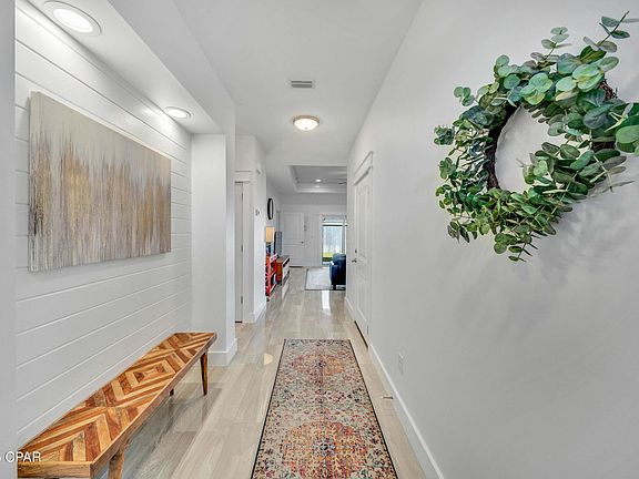 Enjoy coastal living in this newer construction 3-bedroom, 2.5-bath home with garage! This beautiful home has a great location and perfect for full-time living, a beach getaway, or a vacation rental! Thoughtfully designed with open concept and tile floors, quartz countertops, charming shiplap accent wall, and a covered porch overlooking the fenced backyard complete with a hot tub! NO HOA and short-term rentals are allowed! Just a short stroll to beach access at the end of the street and only 1/4 mile to the Grand Lagoon boat ramp. Conveniently located near St. Andrews State Park and just a quick drive to Pier Park. Don't miss your chance to make this your next home away from home!