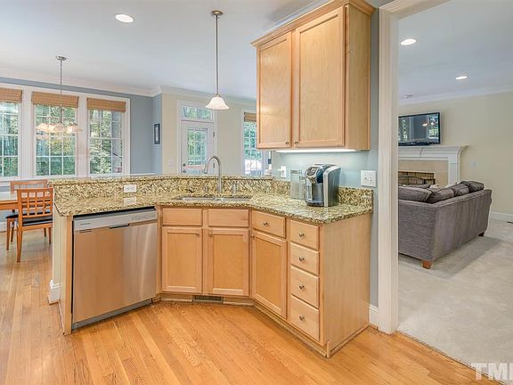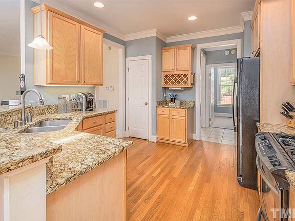 Idyllic Home Peacefully Tucked Away on over an Acre Wooded Culdesac Lot located in Apex! Open Floor Plan w/ ample windows highlight the view of the lush Wooded Lot. Granite Counters & Stainless Appliances in Kitchen add a Modern Touch to this Charming Home. Relax on your Private Back Deck overlooking your own Wooded Backyard Retreat.The 3rd fl Bonus w/ Bedrm & Full Bath makes the perfect In-Law/Teen Suite. 2nd Fl Bonus/Media Rm Projector & Screen convey. New Carpet, NO City Taxes!! Welcome Home!