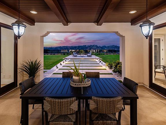 Experience modern luxury in the coveted Alta Del Mar, Coastal Collection with this stunning Plan 4 home. Tucked away on a private cul-de-sac, it offers breathtaking views of the Del Mar Racetrack, San Dieguito River and the sparkling Pacific Ocean beyond. This spacious half-acre lot ensures privacy and tranquility with plenty of room to bring your pool and casita dreams to life. Step inside to experience high quality finishes, including beautiful white oak herringbone flooring with elegant stone inlays. Soaring ceilings and clerestory windows that fill the space with natural light and custom wood finishes and built-in details that create a sophisticated ambiance. With entertaining in mind, this floor plan includes generous living areas, such as a formal living room and a dining room that flows seamlessly into an outdoor space, perfect for friends and family to gather. The home offers owned solar panels, sound system, wine cellar and a chef’s kitchen complete with stunning custom backlit granite countertops. At the front of the house, you’ll find an inviting entry, a guest suite, library/office, powder bath and wine cellar. The elegant staircase leads to a versatile loft area with a front balcony, perfect for a den/game room or extra bedroom, along with an adjacent bathroom. The upper level includes a large laundry room, two ensuite bedrooms, and a luxurious primary suite featuring an office space, an outdoor room with a fireplace and wet bar, and a spa-like bathroom with dual sinks, a dual-entry step-in shower with triple shower heads, a soaking tub, and two walk-in closets. Located just minutes from Del Mar, Solana Beach, and Rancho Santa Fe, this home offers easy access to fantastic dining, shopping, parks, the beach, and award-winning schools. Let us welcome you home today!